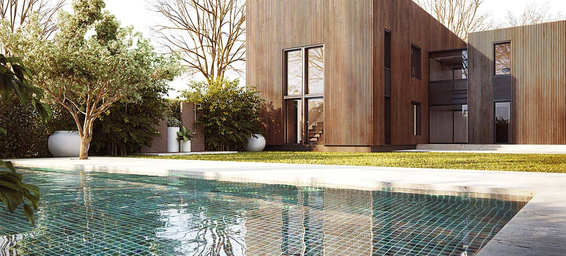 There are three basic materials for covering: wood, metal and ceramic tiles. We had designed this house with panoramic windows, so we only filled it up with functionality.